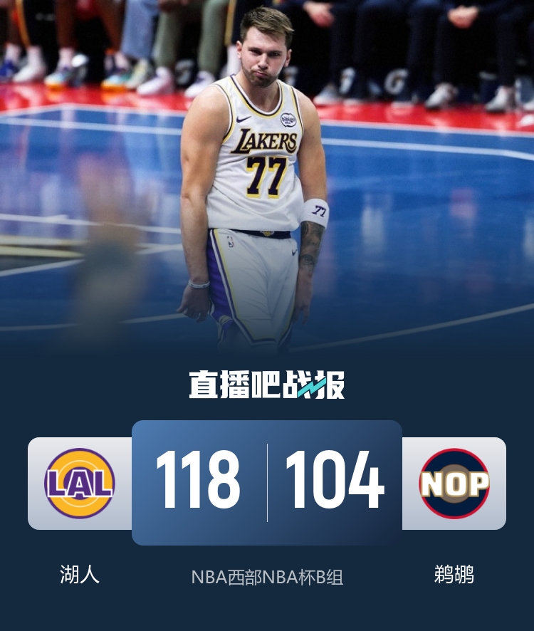 湖人(9-4):里夫斯31分4板7助、东契奇24分7板12助2断、艾顿20分16板2助2断、八村塁14分4板、斯玛特13分5板5助2断、拉拉维亚6分3板3断2帽、克内克特5分1板、范德比尔特3分2板1助2断、海斯2分3板1助