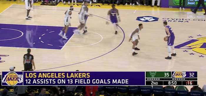 01-10 湖人13次运动战进球12次助攻,战术执行高效